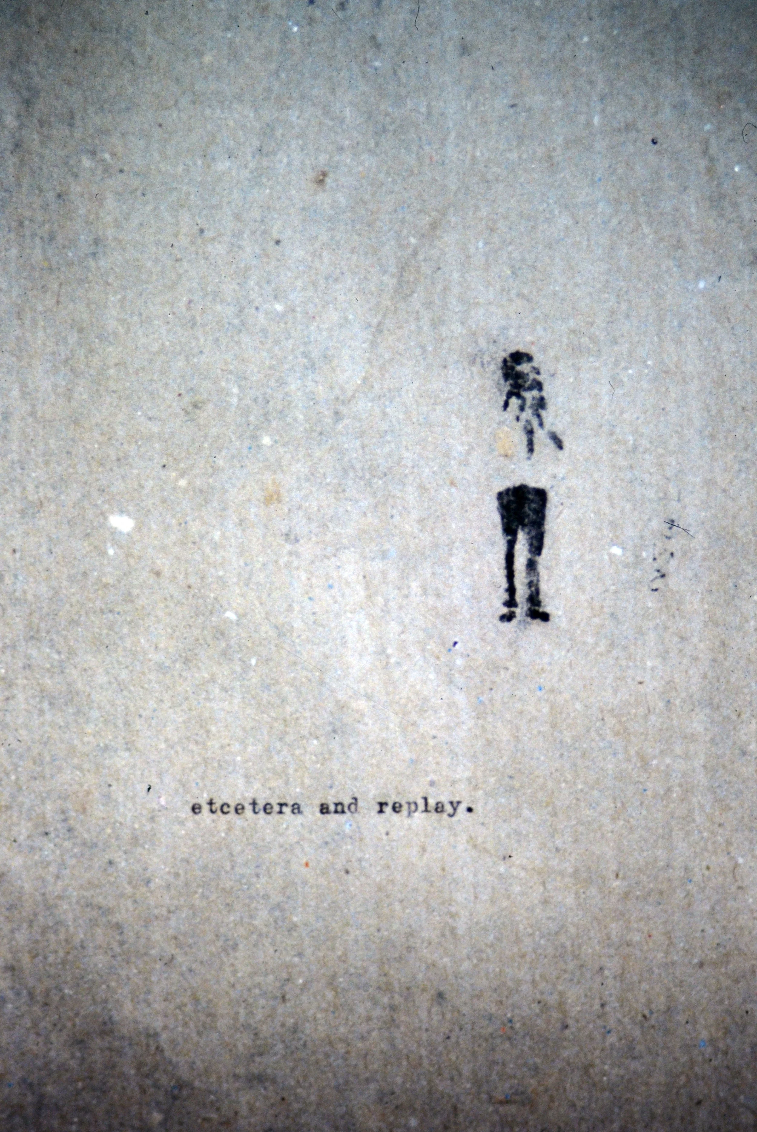 untitled (etcetera and replay), 1996, oil pigment montotype and typewriter on paper, 4” x 9”
