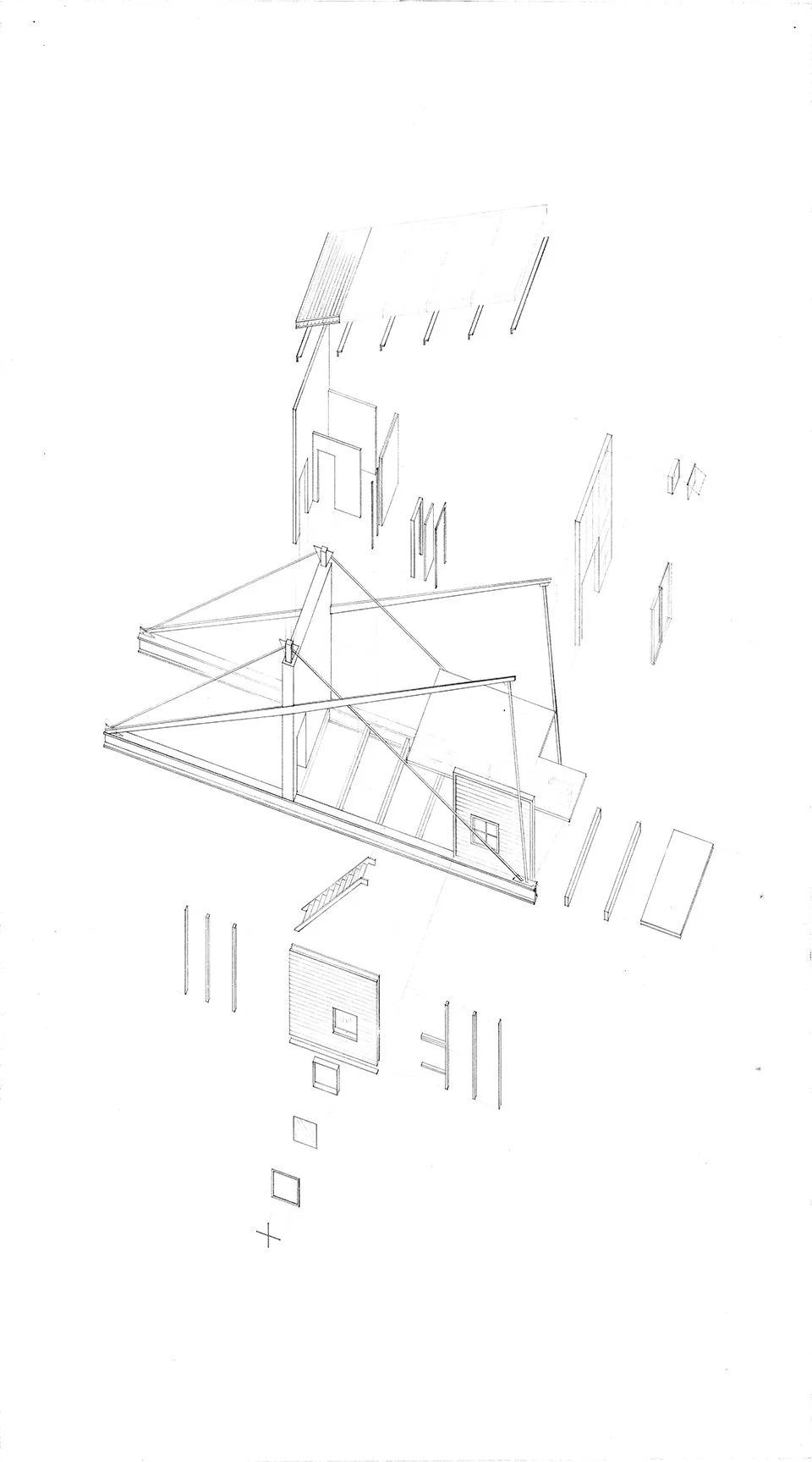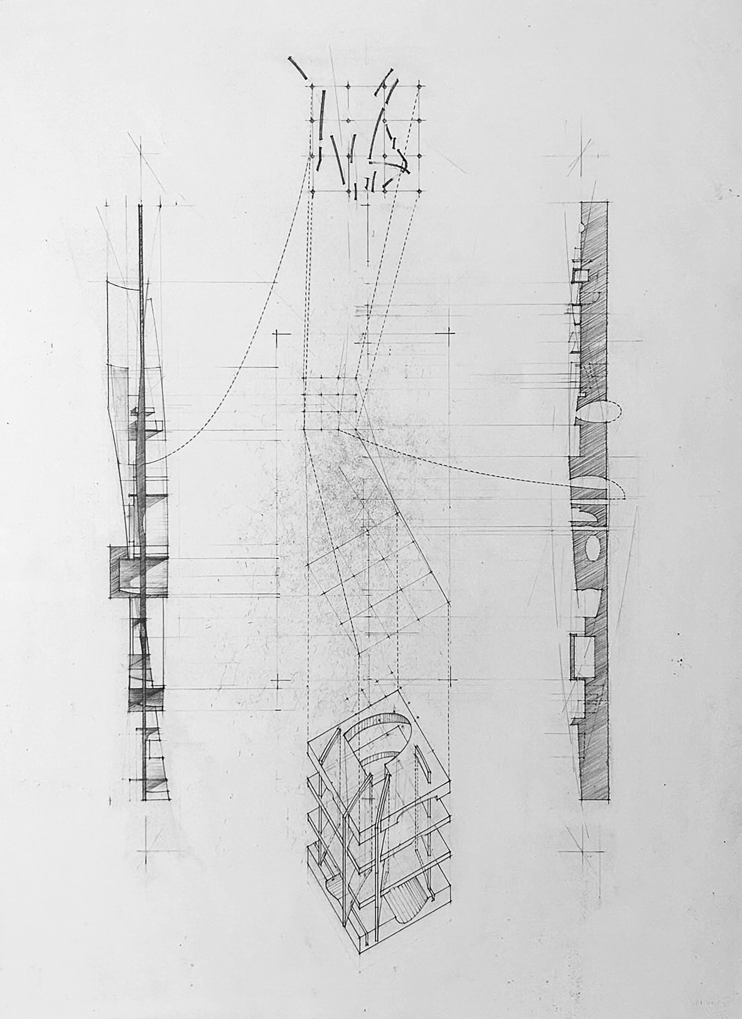 marine life research center, plan, section, and detail, 1987, graphite on vellum - reverse photostatic print, 18” x 24”