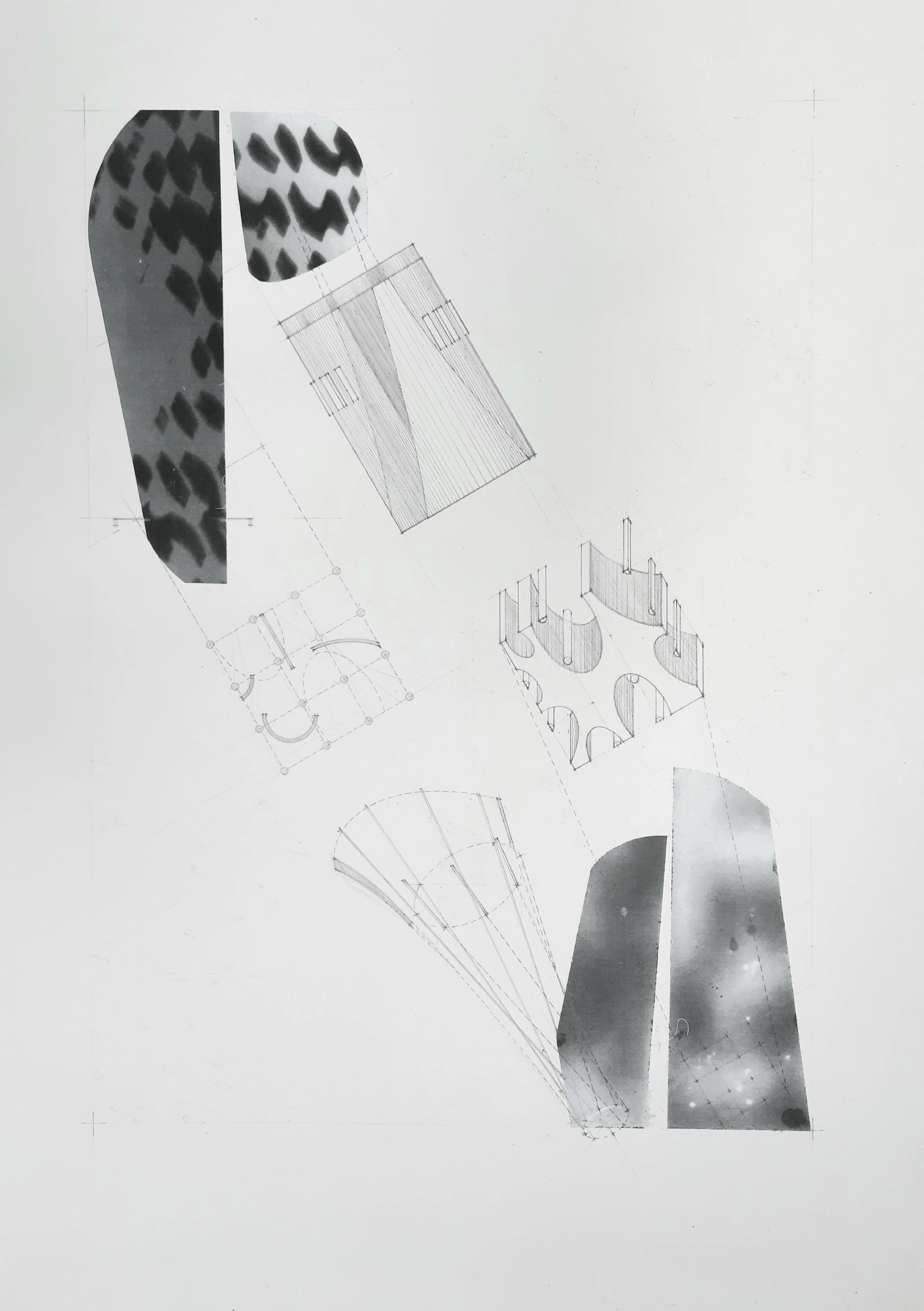 evaporation drawing, porous images, 2023, ink and graphite on paper, 25” x 37”