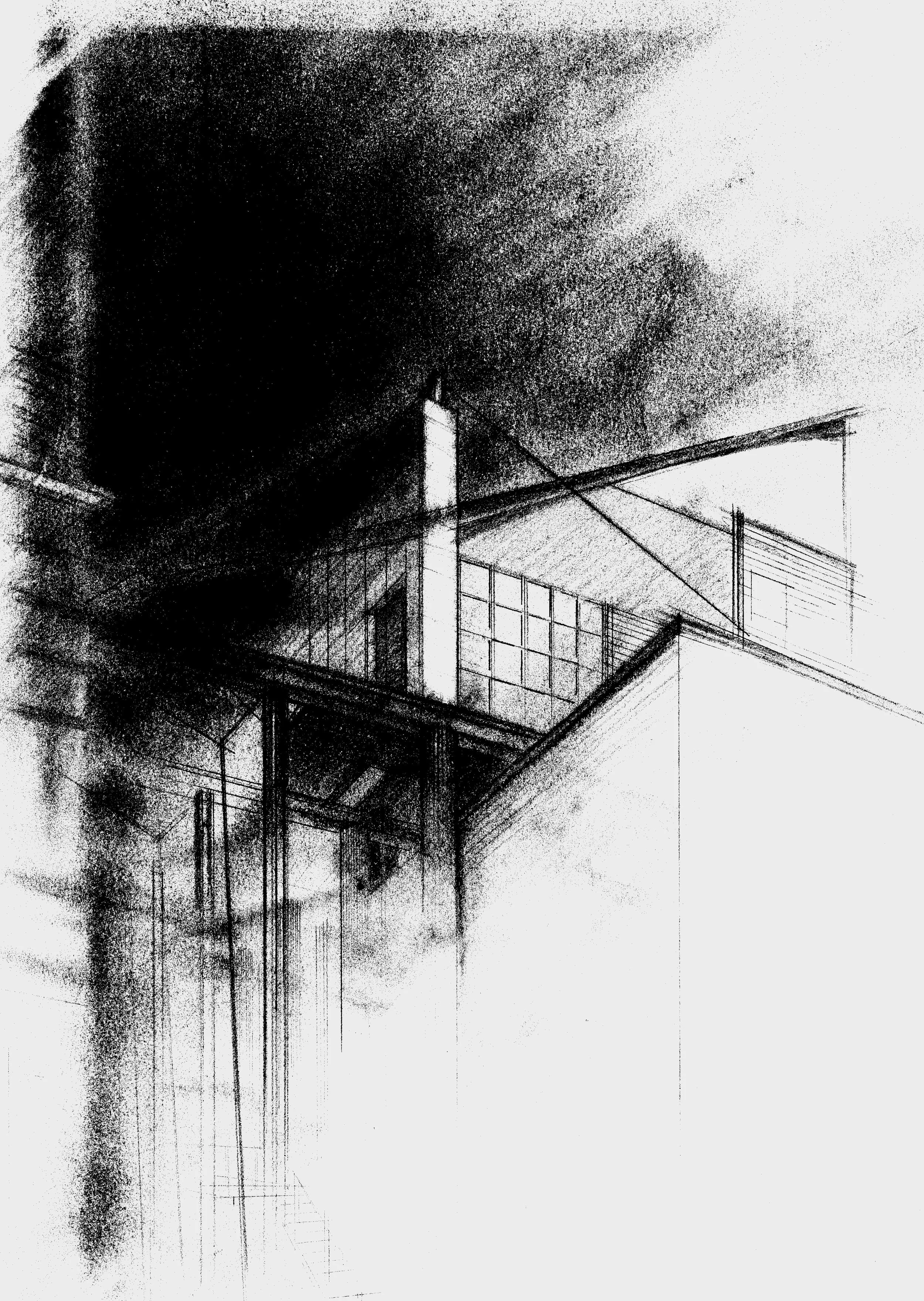 row house above Lord & Taylor, Back Bay, Boston, 1988, graphite on vellum, 18” x 24”
